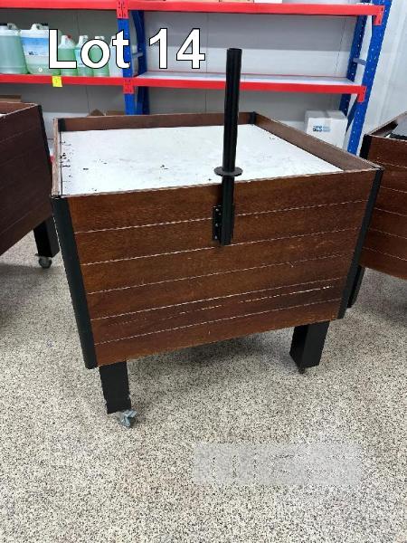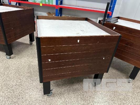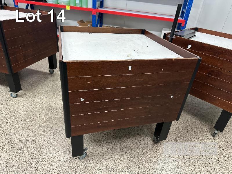 TIMBER PRODUCT DISPLAY STAND ON LOCKING CASTOR WHEELS