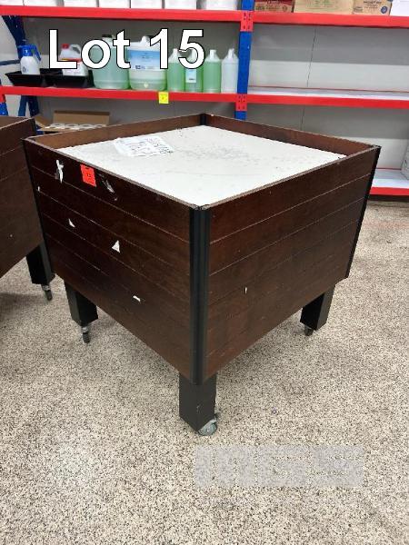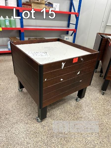 TIMBER PRODUCT DISPLAY STAND ON LOCKING CASTOR WHEELS 900 x 900 x 900mm (H)