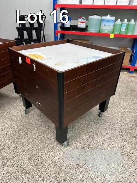 TIMBER PRODUCT DISPLAY STAND ON LOCKING CASTOR WHEELS 900 x 900 x 900mm (H)