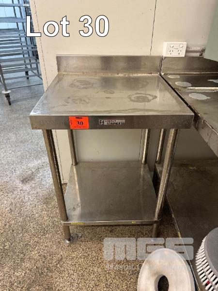 STAINLESS STEEL INFILL BENCH WITH SPLASHBACK. 2 TIER