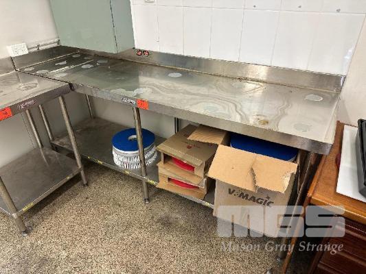 STAINLESS STEEL INFILL BENCH WITH SPLASHBACK. 2 TIER