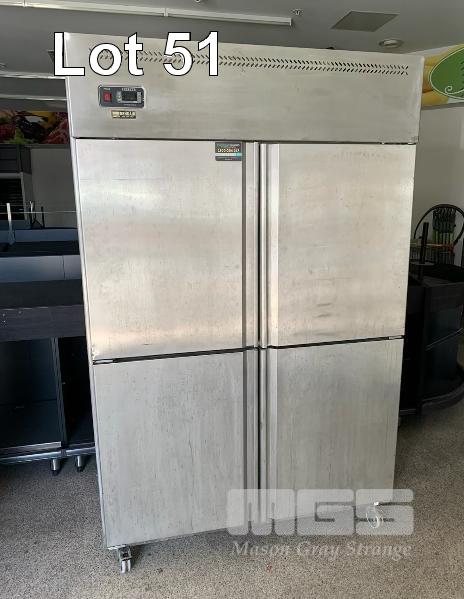 4 DOOR CHEFS FREEZER, STAINLESS STEEL CASED, APPROX 1000L CAP, DRO, 240V