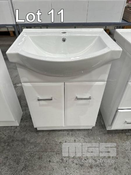 BATHROOM VANITY WITH CHINA TOP SINK, WHITE, 2 DOOR, CHROME HANDLES, 600 x 480 x 880mm (H) RRP $626.82, NEW IN BOX!