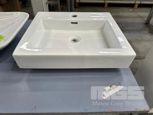 PORCELAIN SINK, WHITE, WITH OVERFLOW SINGLE TAP HOLE 490 x 440 x 140mm (H) NEW IN BOX!