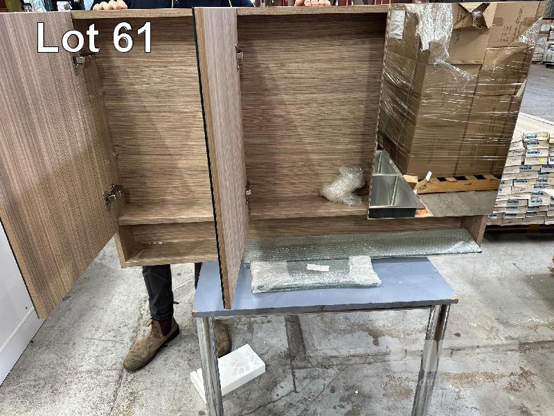 WALL MOUNT MIRROR CABINET, COLOUR: OAK WITH INTERNAL GLASS SHELVES 1200 x 750 x 155mm RRP $510, NEW IN BOX! NEW IN BOX!