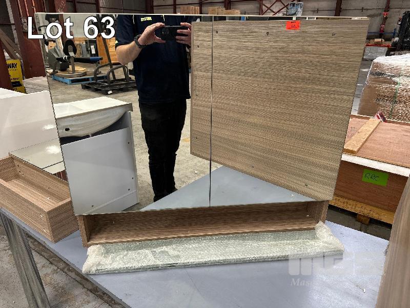 WALL MOUNT MIRROR CABINET, COLOUR: OAK WITH INTERNAL GLASS SHELVES 900 x 750 x 155mm RRP $510, NEW IN BOX!