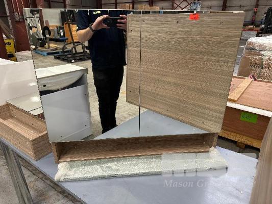 WALL MOUNT MIRROR CABINET, COLOUR: OAK WITH INTERNAL GLASS SHELVES 900 x 750 x 155mm RRP $510, DISPLAY MODEL