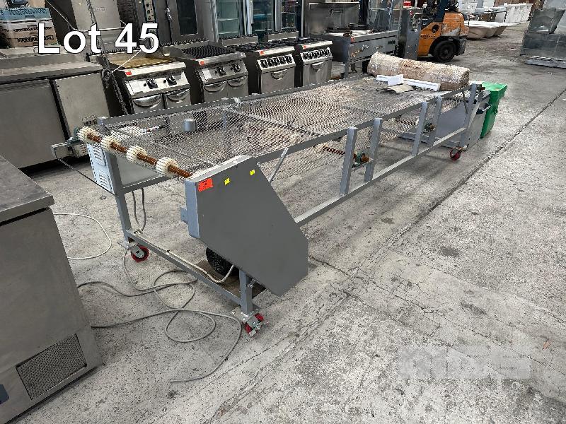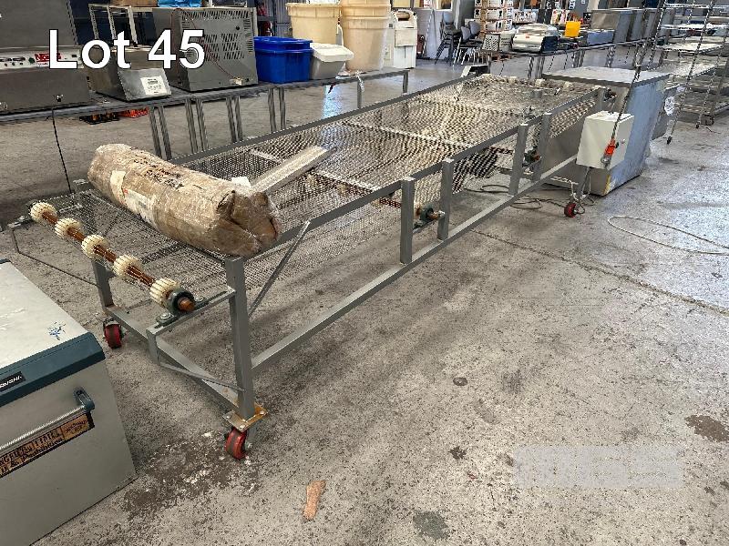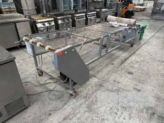 COMMERCIAL COOLING CONVEYOR, 3300 x 900mm CASTOR WHEELS, STAINLESS STEEL, MESH BELT, STEEL FRAME, WEG 3kw ELECTRIC MOTOR WITH SPARE BELT
