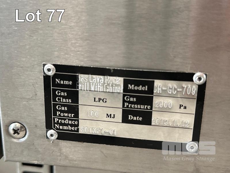 2 BURNER LAVA BOILER MOD: CR-GC-709 DOM: 2013 LPG, 2 DOOR UNDER GRILL STORAGE WITH BOOK