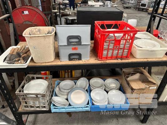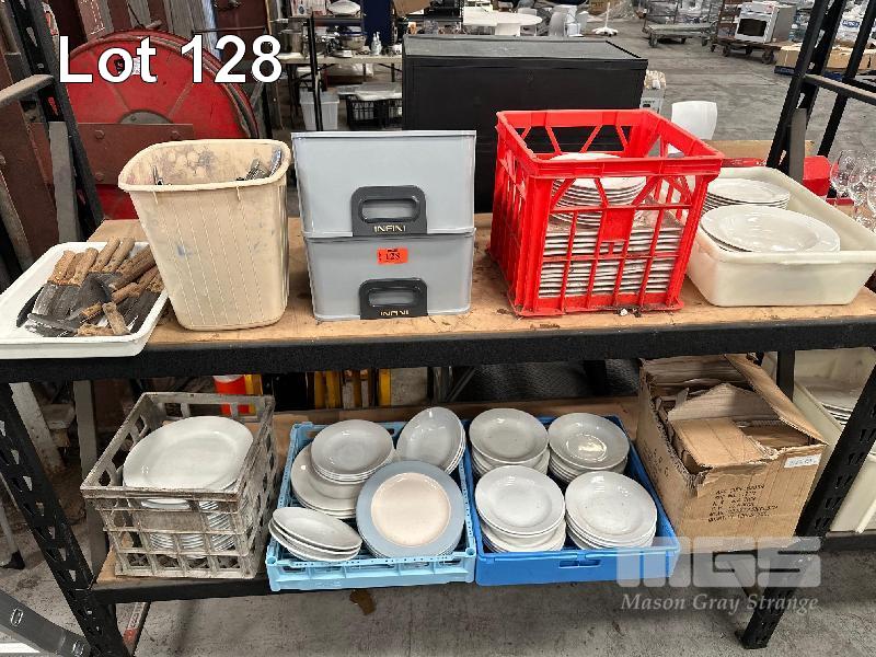LARGE QUANTITY PLATES, BOWLS, CUTLERY & STEAK KNIVES CONTENTS 2 x SHELVES