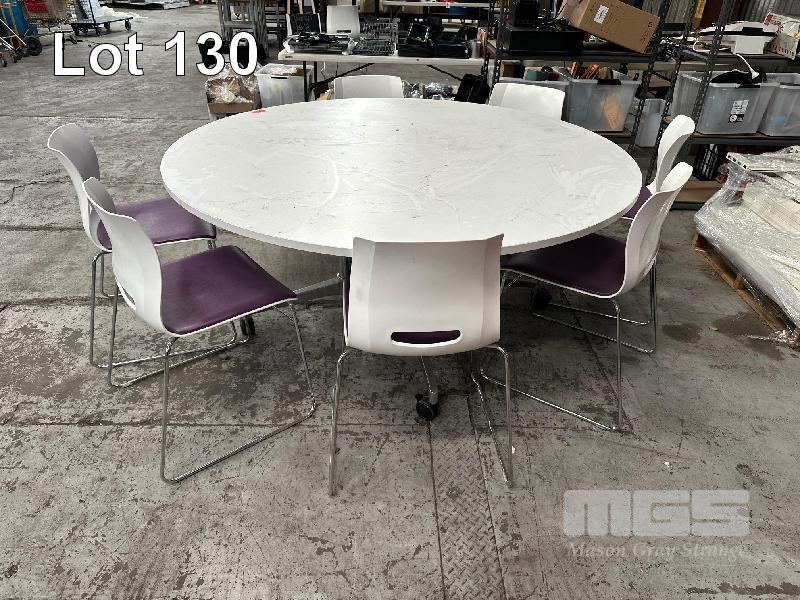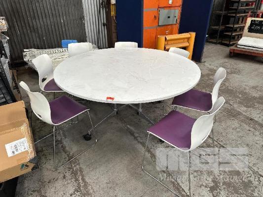 CIRCULAR TABLE, 1700mm (D), TIMBER LAMINATE, MOBILE WITH 8 x CHAIRS, WHITE/PURPLE