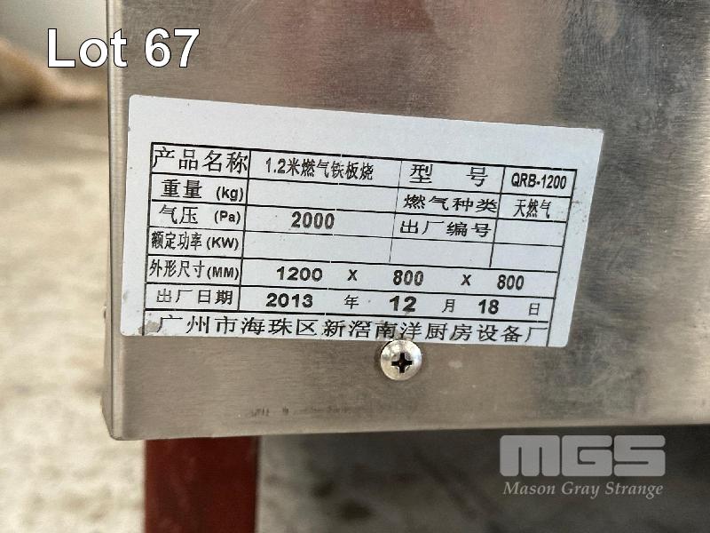 HIBACHI GRILL, LANYANG FOOD SERVICE MOD: QRV-1200 DOM: 2013 FAN FORCED 240V, 15A PLUG GRILL AREA: 1100 x 520mm NATURAL GAS