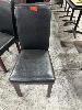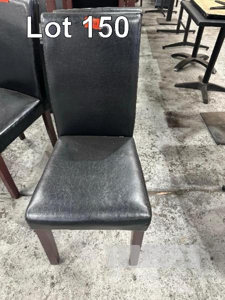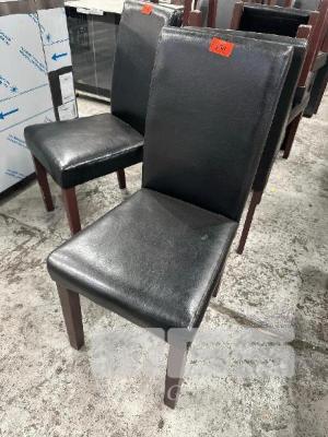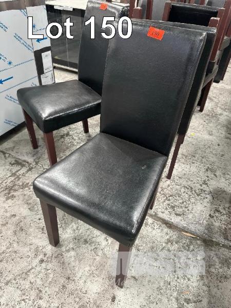 10 x CAFE CHAIRS, BLACK LEATHER, BROWN TIMBER LEGS