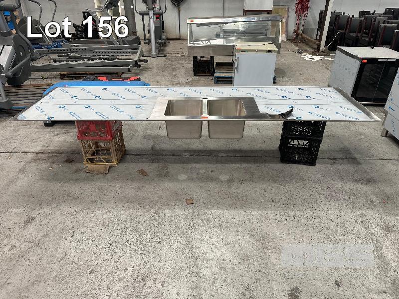 STAINLESS STEEL TWIN BOWL SINK, 3200 x 900mm