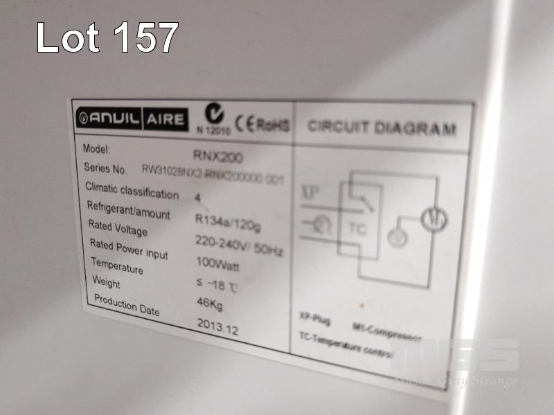 UNDER BENCH FREEZER, ANVIL AIRE MOD: RNX200. SINGLE DOOR 170 LITRE