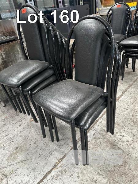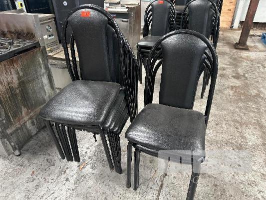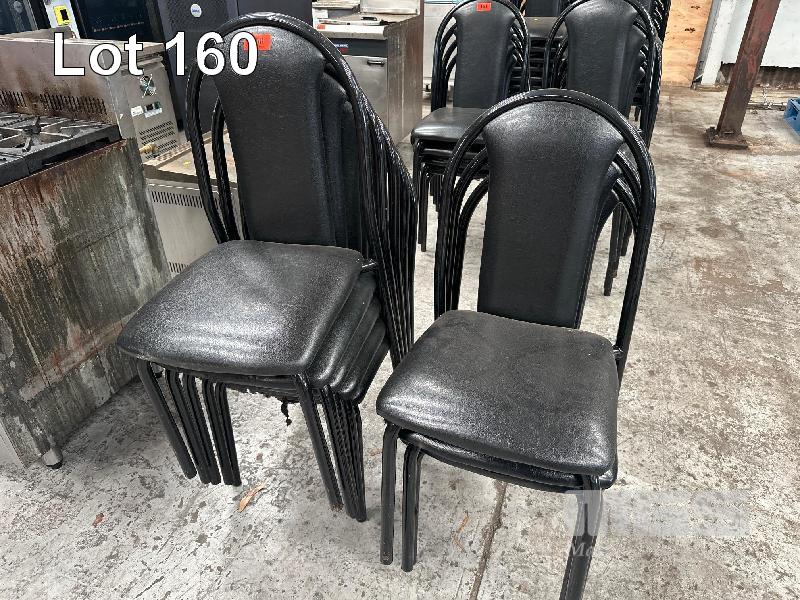 30 x STACKABLE CHAIRS, BLACK VINYL, BLACK STEEL FRAME