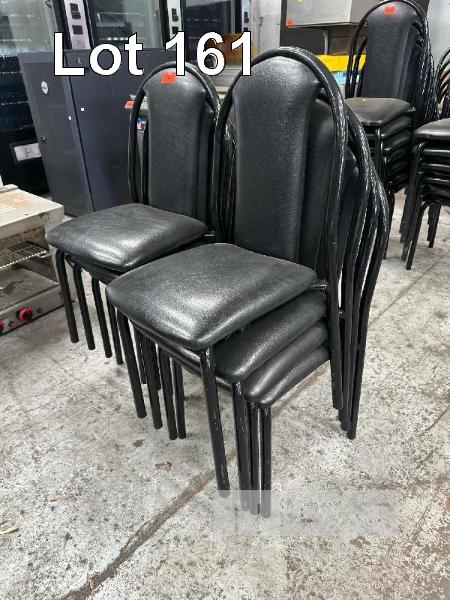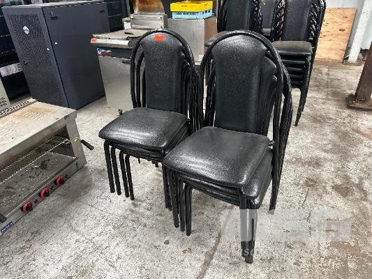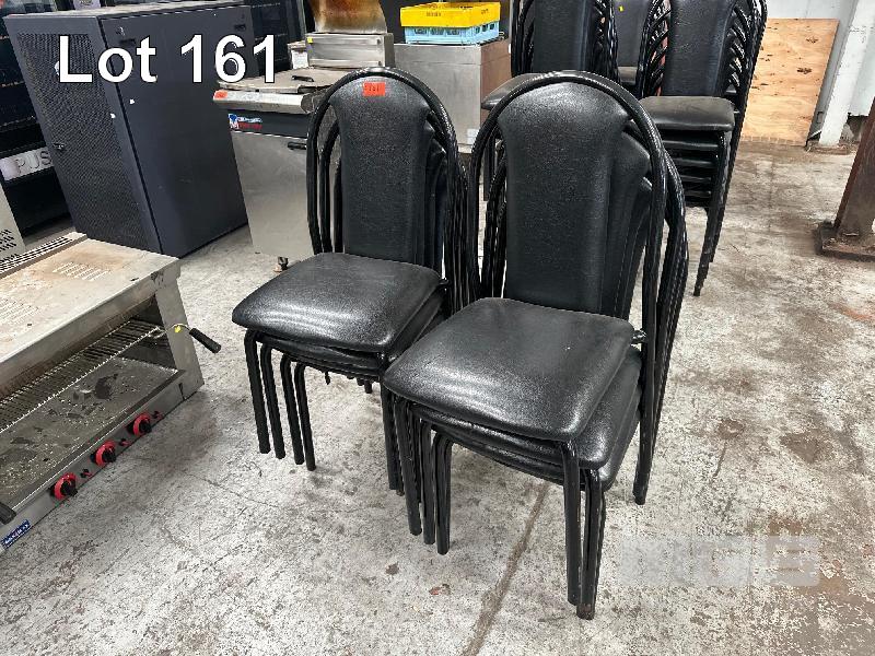 30 x STACKABLE CHAIRS, BLACK VINYL, BLACK STEEL FRAME