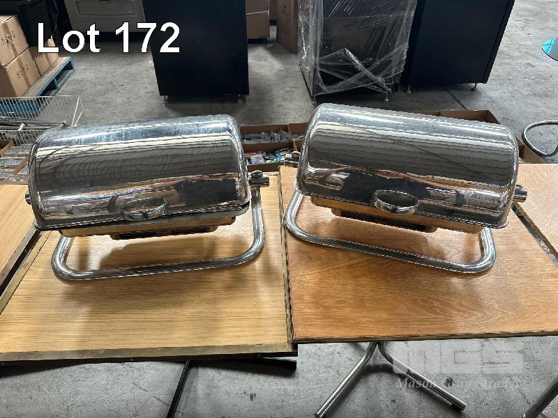 2 x CHAFING DISHES, STAINLESS STEEL