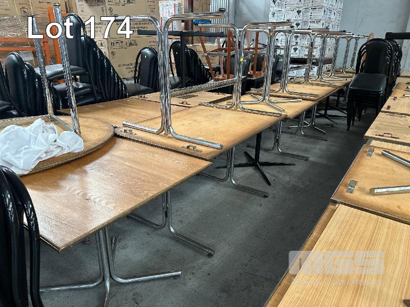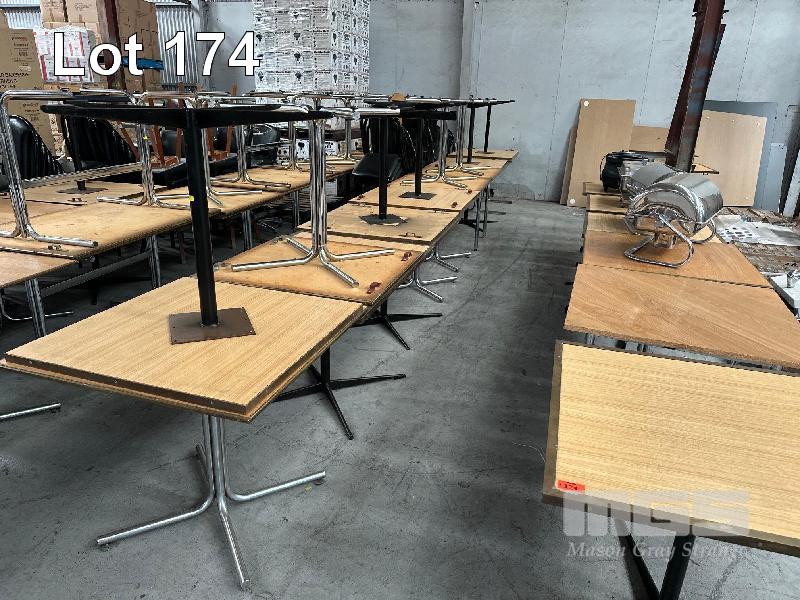 43 x BRASS EDGE TABLES, POOR CONDITION, SUIT REFURB, NON MATCHING BASES
