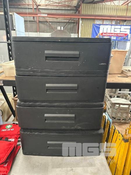 STEEL FILING CABINET, 2 DRAWER & PVC STORAGE UNIT, 4 DRAWER