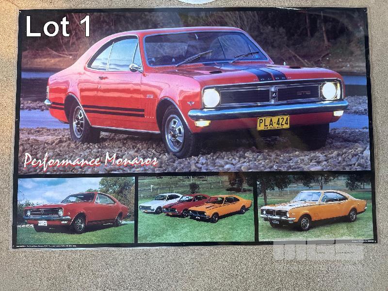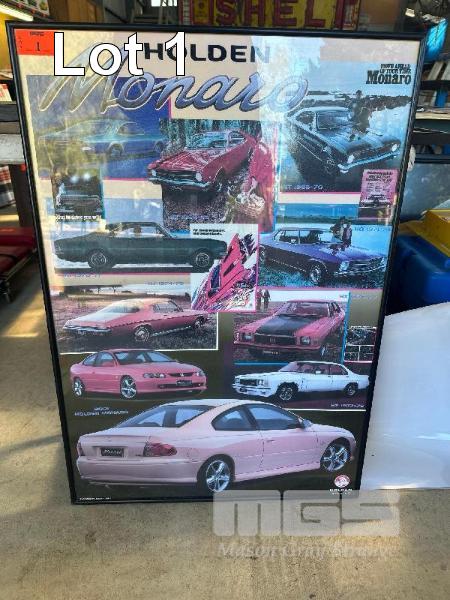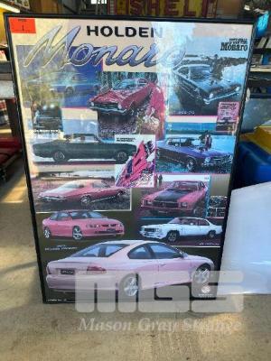 HOLDEN MONARO PRINT, GLAZED, 610 x 880mm WITH MONARO POSTER, 900 x 600mm