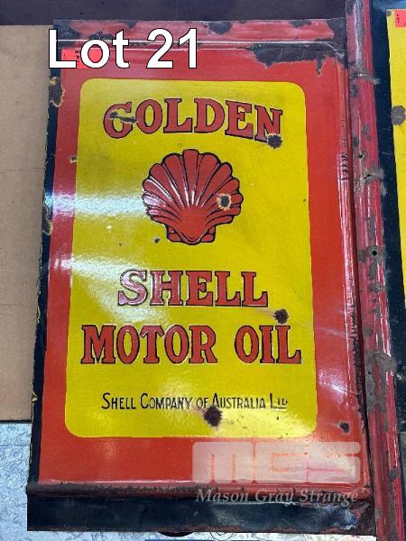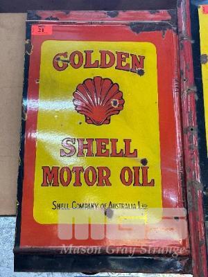 SHELL GOLDEN MOTOR OIL VINTAGE TIN SIGN, 440 x 730mm