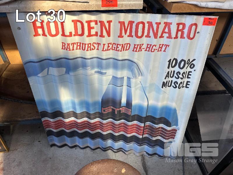HOLDEN MONARO CORRUGATED STEEL SIGN, 840 x 860mm