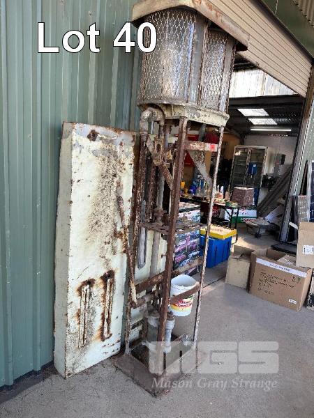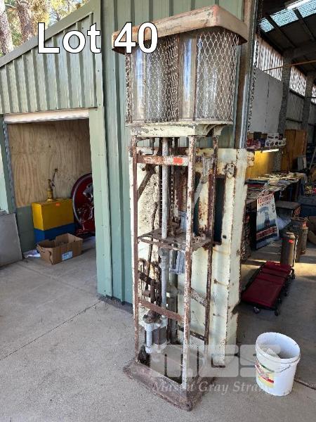 VINTAGE GRAVITY FEED FUEL BOWSER, DUAL