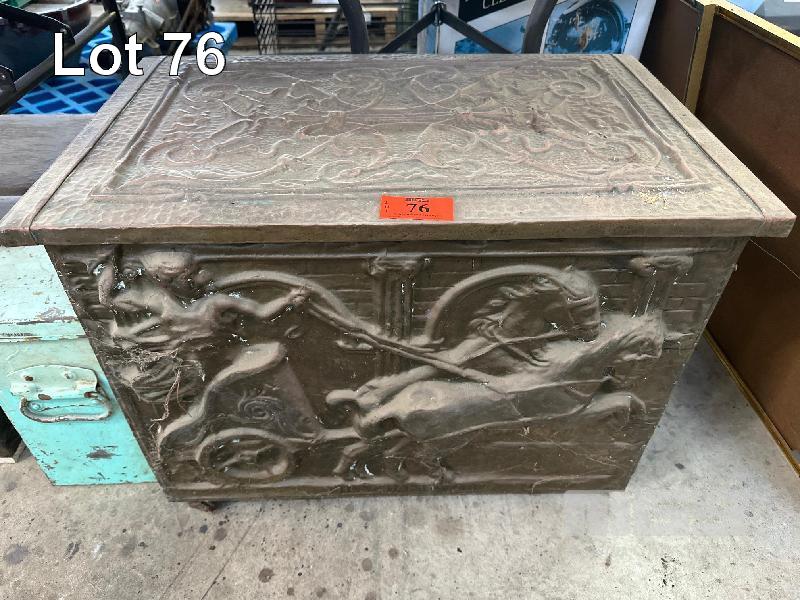 VINTAGE COPPER FIREWOOD BOX, 630 x 400 x 460mm