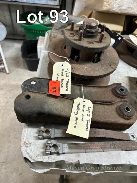 LC/LJ PARTS INCLUDING FRONT DISC ROTORS, BONNET CATCH, REAR TRAILING ARMS & EARTH LEADS