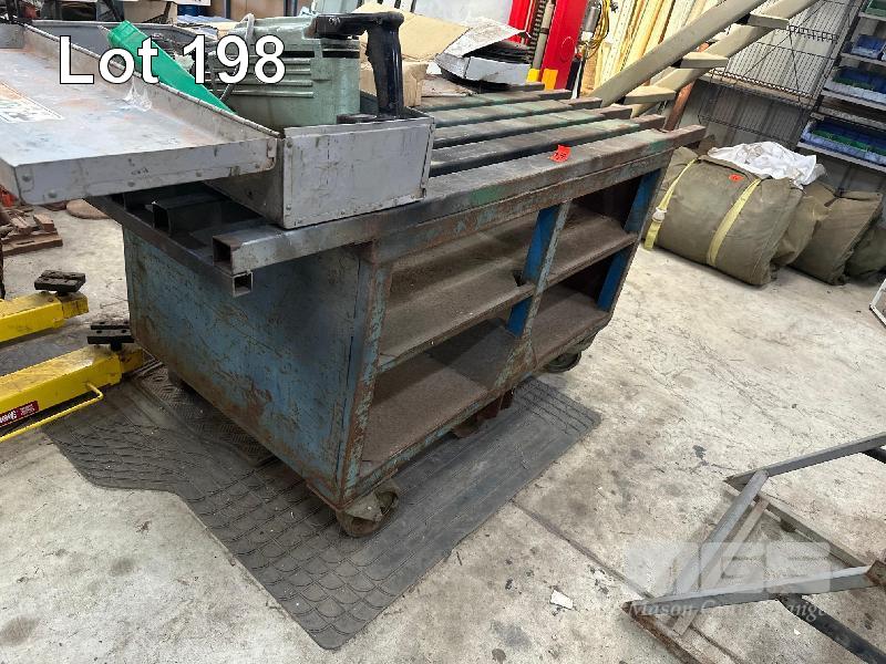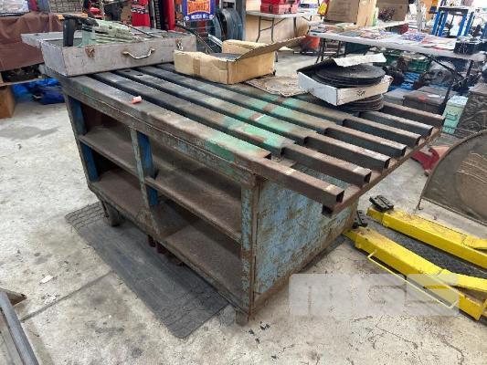MOBILE STEEL WELDERS BENCH, 1750 x 800 x 850mm, CENTRE PIVOT WHEELS