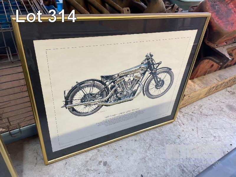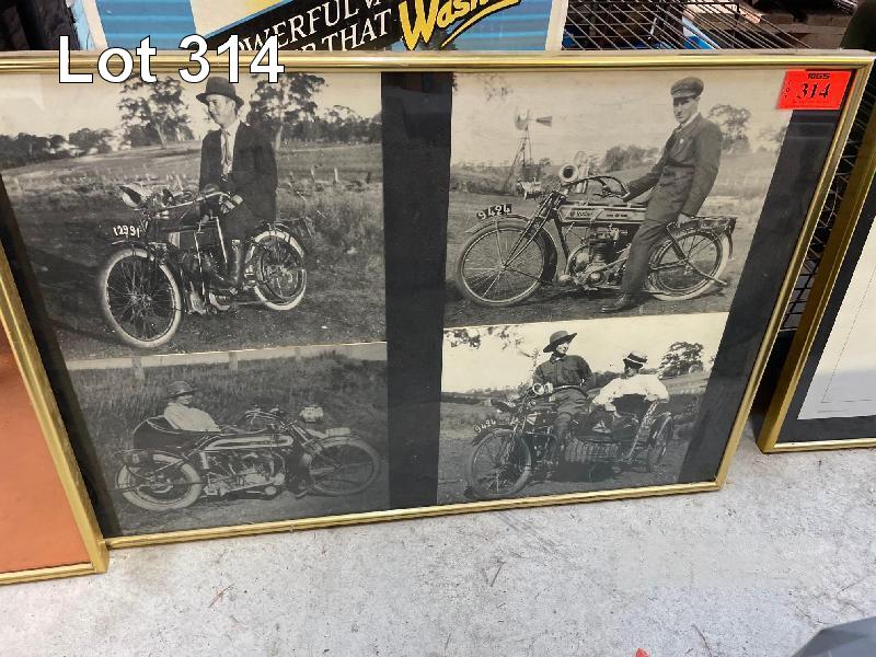 2 x HISTORICAL PHOTOGRAPHS, 600x 500mm & 750 x 500mm, GLAZED & BROUGH SUPERIOR PRINT, 600 x 500mm