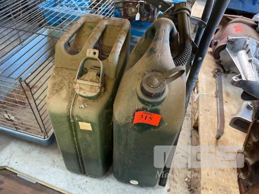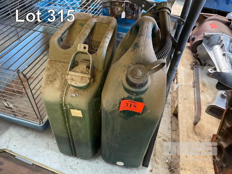 2 x JERRY CANS, 20 LITRE, 1 x STEEL & 1 x PLASTIC