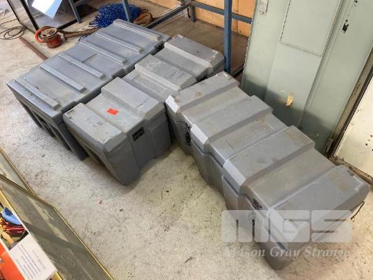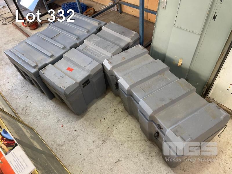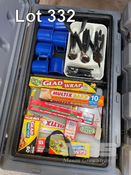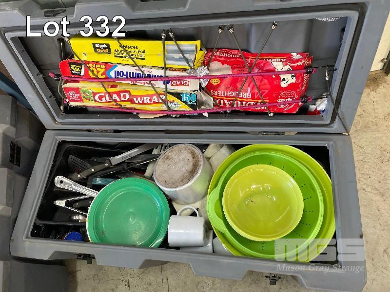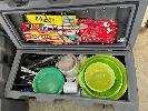 3 x SPACE CASES WITH CAMPING KITCHEN EQUIPMENT, CUTLERY, PLATES, CUPS, CAMP OVEN, CAMP STOVE, SOLAR SHOWER, ETC