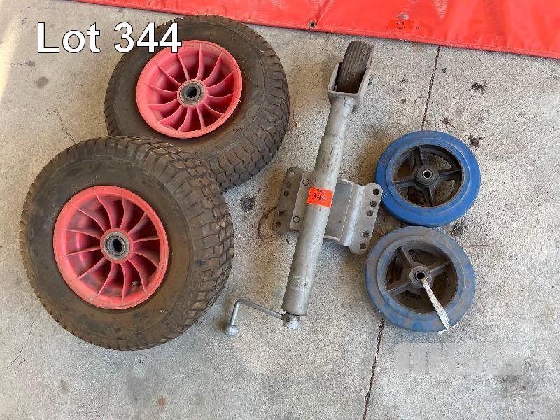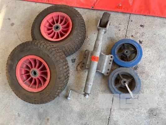 2 x SOLID SACK TRUCK WHEELS, 2 x REPLACEMENT WHEELBARROW WHEELS & JOCKEY WHEEL