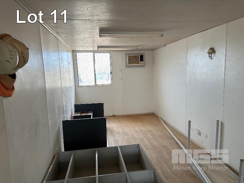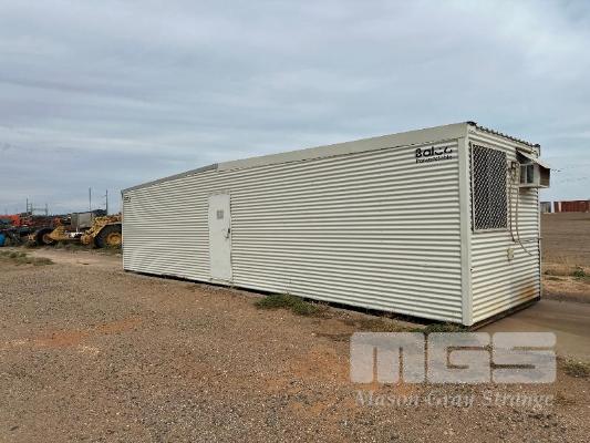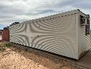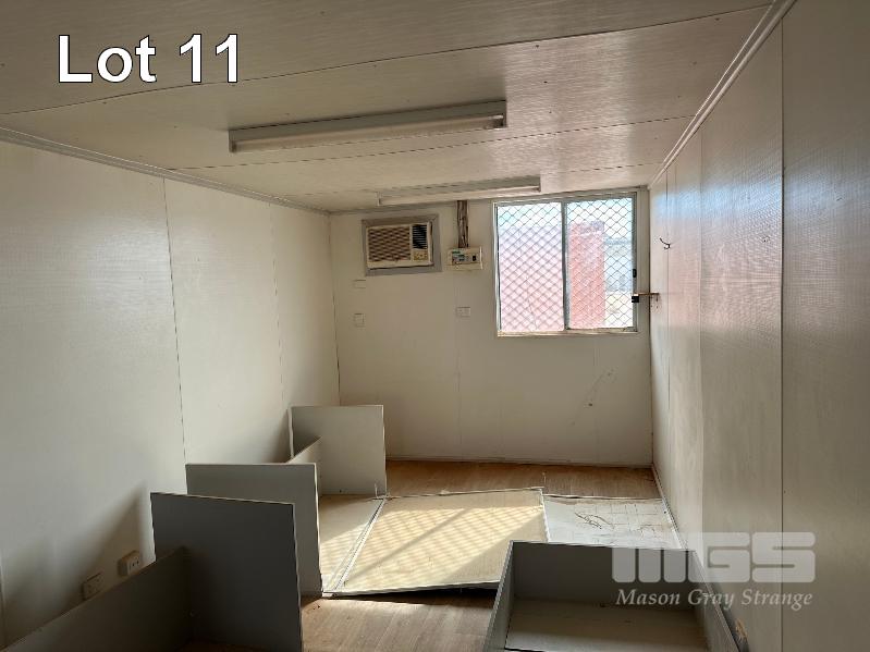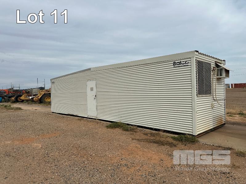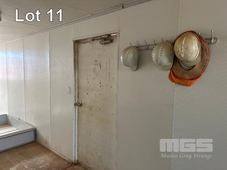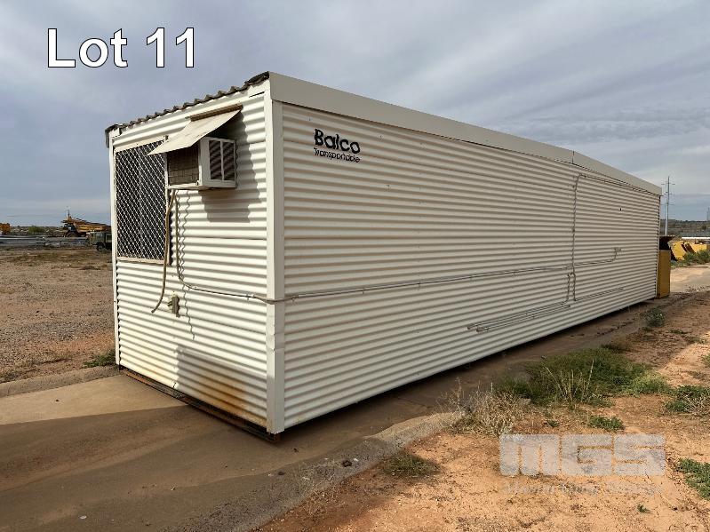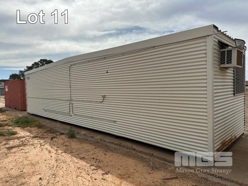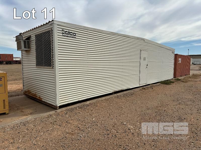 TRANSPORTABLE CRIB ROOM/OFFICE 12 x 3m, CORRUGATED COLORBOND CLAD OPEN PLAN, 2 x END WINDOWS & WALL A/C'S, SINGLE ENTRANCE