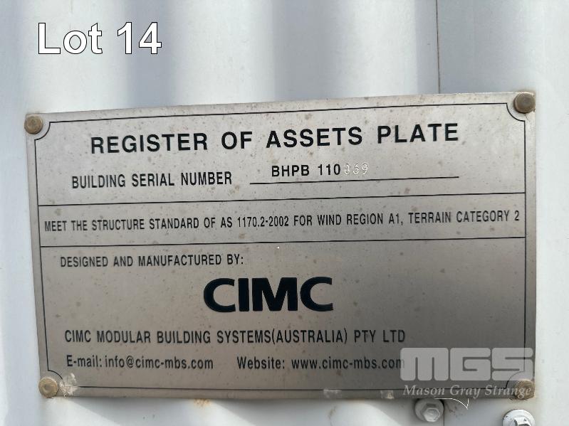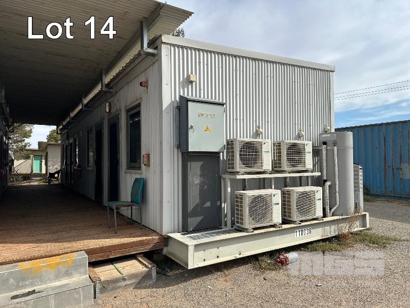 ACCOMMODATION UNIT, 4 ROOM CIMC CIRCA 2015 15.15 x 4.45m 22,000kg SELF CONTAINED ROOM WITH ENSUITE, COMPLETE WITH BED, DESK, CTV, FRIDGE, CUPBOARD, ELECTRIC HOT WATER, DAIKIN SPLIT SYSTEM A/C WITH VERANDAH ID NO: 110036