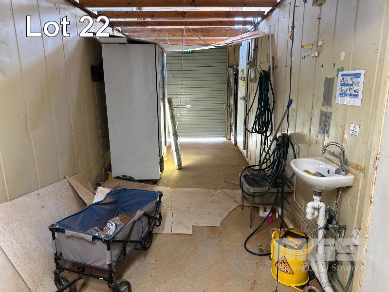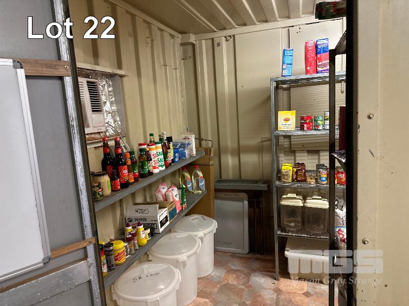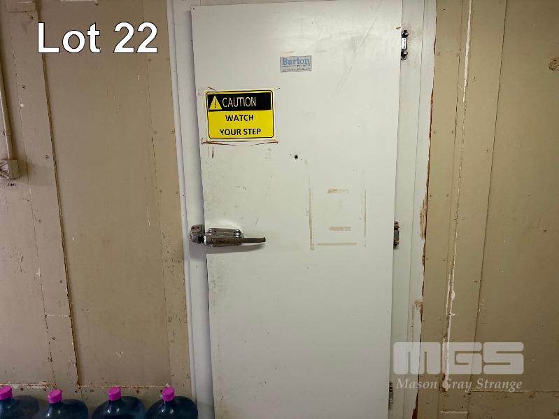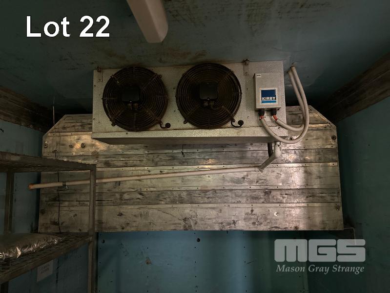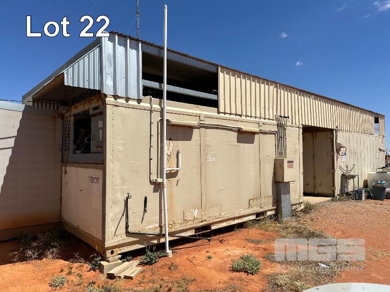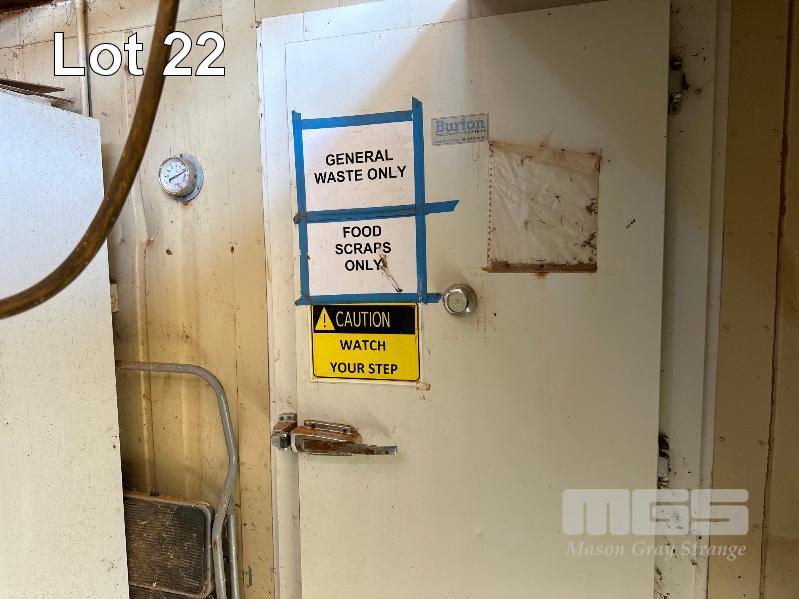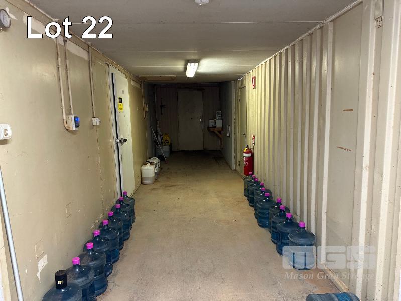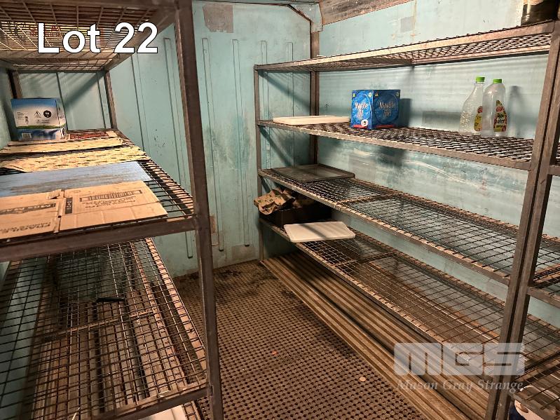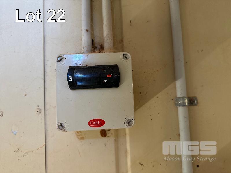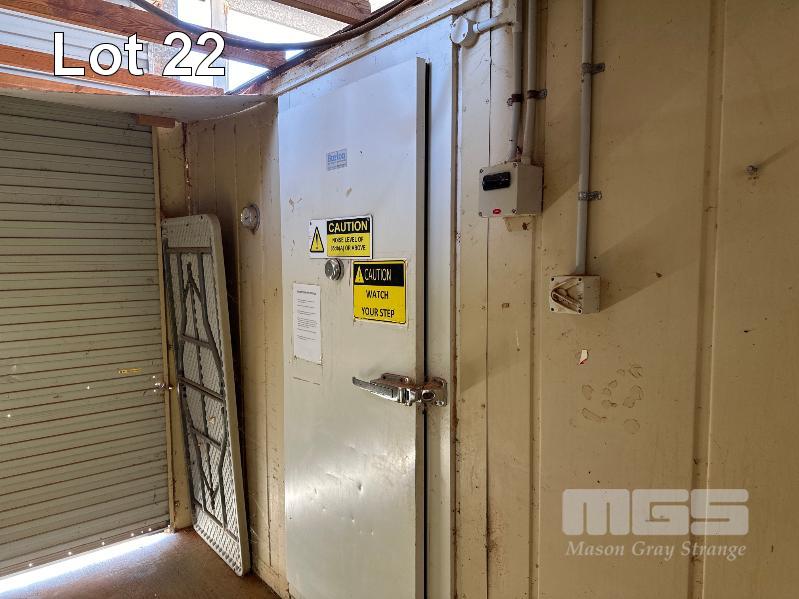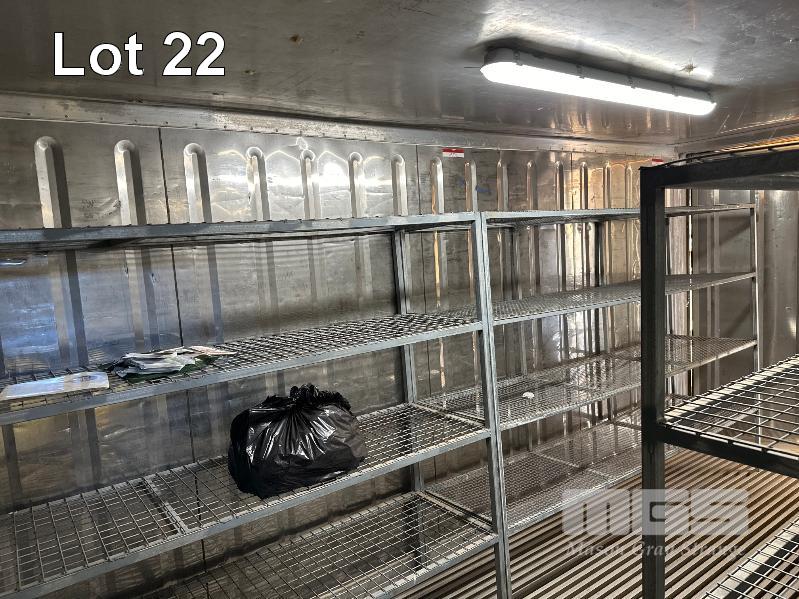 COLD STORE AREA COMPRISING 4 x REFRIGERATED CONTAINERS, EACH 20' ALL WITH SIDE DOOR ACCESS, 1 x OPERATING COLD STORE & RACKING, 1 x OPERATING FREEZING & RACKING, (NOT IN USE) RECENT FITTED ROOF MOUNT TRIDENT REFRIGERATION PLANT, 1 x STORAGE UNIT ONLY (INSULATED CONTAINER), 1 x GENERAL GOODS, STORE, (WALL MOUNT A/C OPERATING) & RACKING WITH TUBE STEEL ANNEX COVER OVER ALL 4 CONTAINERS (BUYER TO DISMANTLE)