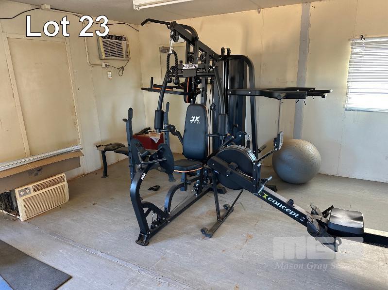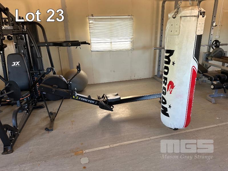 GYM/ACTIVITIES BUILDING (INCLUDES ICE STORE) COMPRISING 2 x 12 x 3m OPEN PLAN BUILDINGS, BOLT TOGETHER FRAMES SEPARATE ICE STORE ROOM WITH SCOTSMAN MV456 ICE MACHINE, EXQUISITE CHEST FREEZER & GYM EQUIPMENT INCLUDING TREADMILL, MULTI GYM, BOXING BAG, CONCEPT ROWER, SMITH MACHINE, KITCHENETTE, BENCH LOUNGES, CTV, 1 x SPLIT SYSTEM A/C & 3 x WALL A/C'S