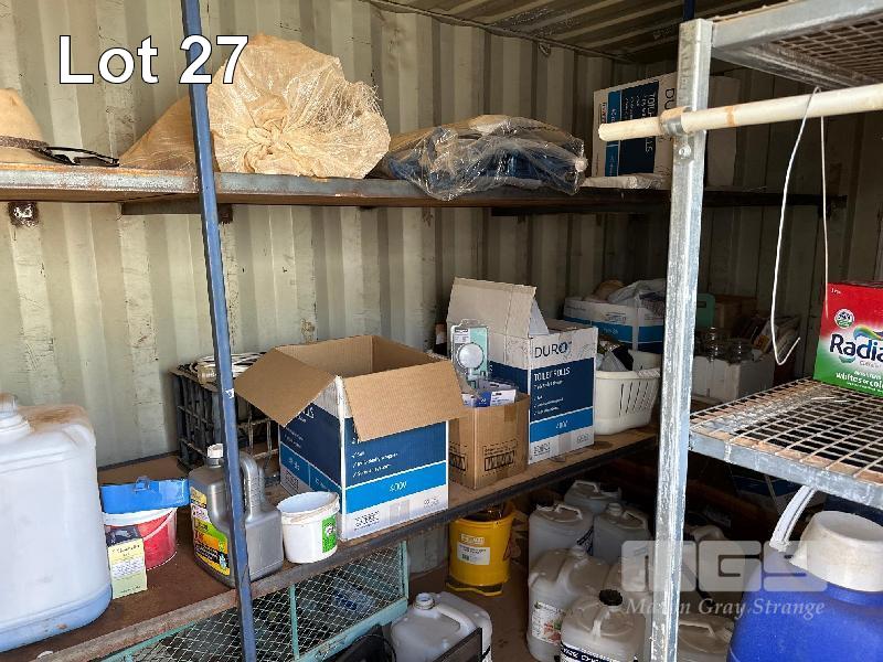 DRY STORE SHIPPING CONTAINER, 20' SIDE ACCESS WITH RACKING & LAUNDRY PRODUCT