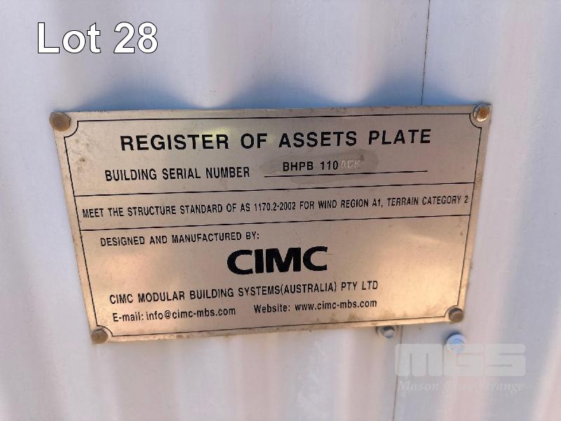 ACCOMMODATION UNIT, 4 ROOM CIMC CIRCA 2015 15.15 x 4.45m 22,000kg SELF CONTAINED ROOM WITH ENSUITE, COMPLETE WITH BED, DESK, CTV, FRIDGE, CUPBOARD, ELECTRIC HOT WATER, DAIKIN SPLIT SYSTEM A/C WITH VERANDAH ID NO: 110055