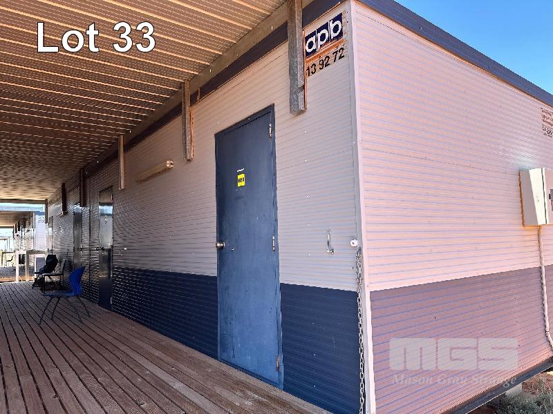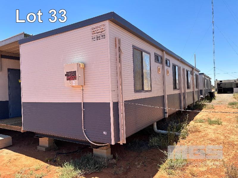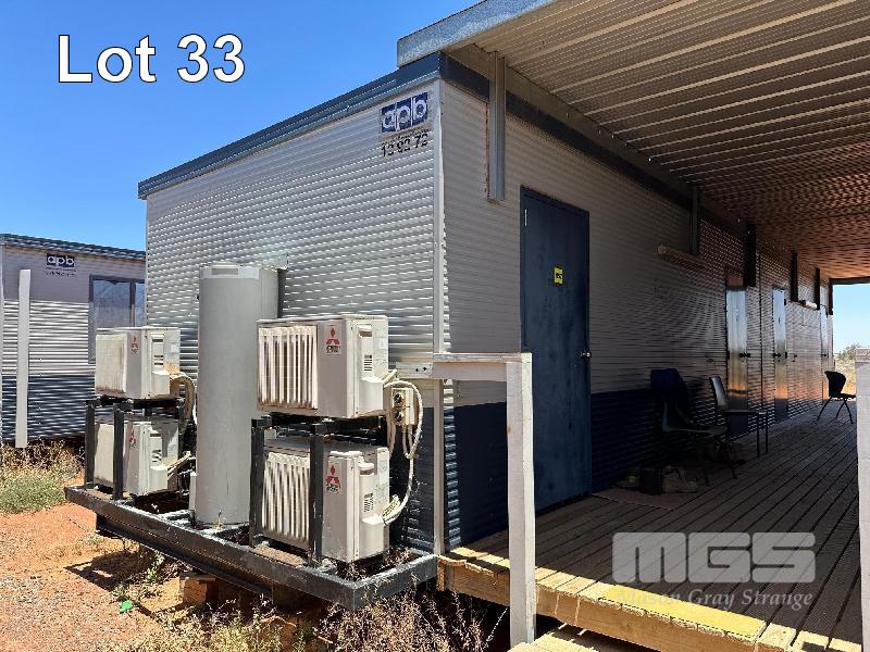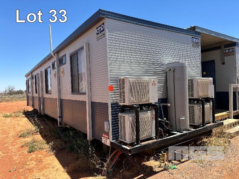 4 BED & ENSUITE TRANSPORTABLE, AUST PORTABLE BUILDINGS (APB) 14.5 x 3.3m & END A/C RACK (600mm) EACH BED, FRIDGE, CUPBOARD, CTV, DESK, 4 x SPLIT S/C SYSTEMS