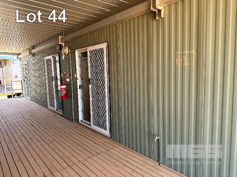 4 BED & ENSUITE TRANSPORTABLE, AUSCO 14.5 x 3.4m & 4 x SPLIT SYSTEM A/C'S, ALL GREEN CLADDING WITH GLASS SLIDING DOORS EACH BED, FRIDGE & TV IN 3 x ROOMS ONLY WITH ANNEXE