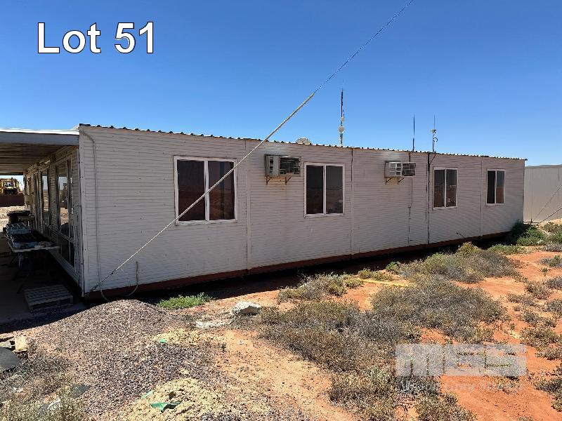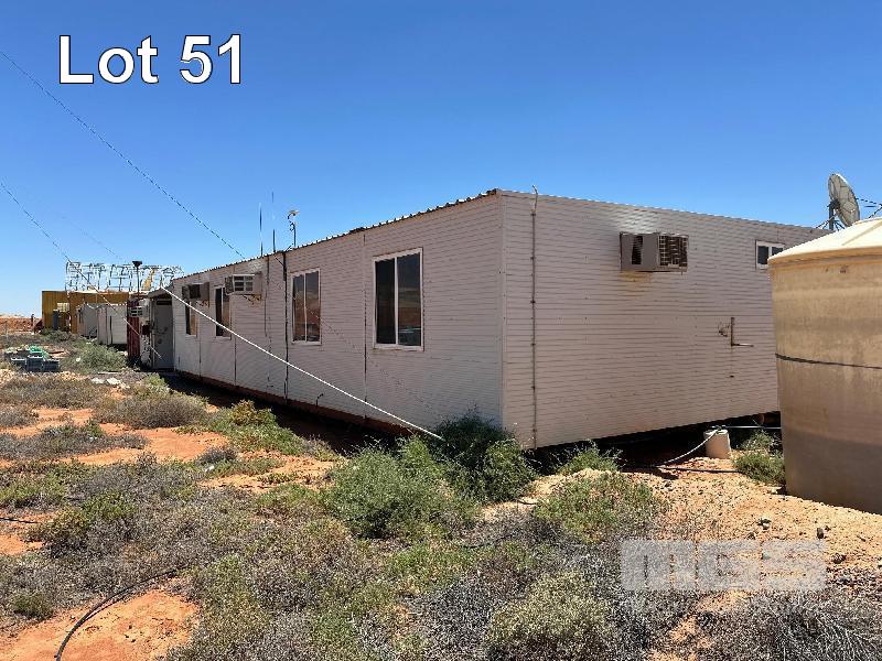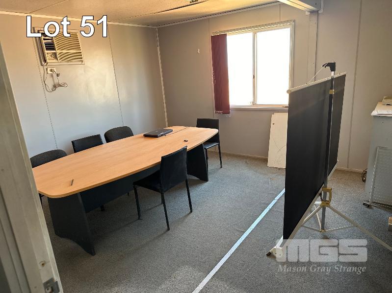 SERVICE AREA OFFICE MODULE 4 x UNITS EACH 12 x 3m, OPEN PLAN WITH VERANDAH 7 x OUTER OFFICES, OPEN PLAN CENTRE, ABLUTION, MALE/FEMALE & KITCHENETTE, MEETING ROOM INCLUDES SPLIT SYSTEM & WALL A/C'S. COMS, RACKMOUNT SERVER, RECEIVER, BOARDROOM TABLE, DESKS, CHAIRS & STORAGE