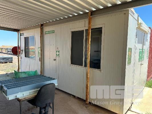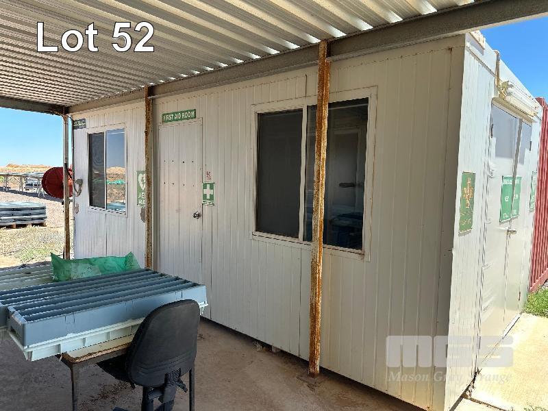 TRANSPORTABLE FIRST AID ROOM, PORTASTRUCT 6 x 3m PA DOOR, REAR DOUBLE DOOR STRETCHER ACCESS, FIRST AID BED, CABINET, STRETCHERS, ETC