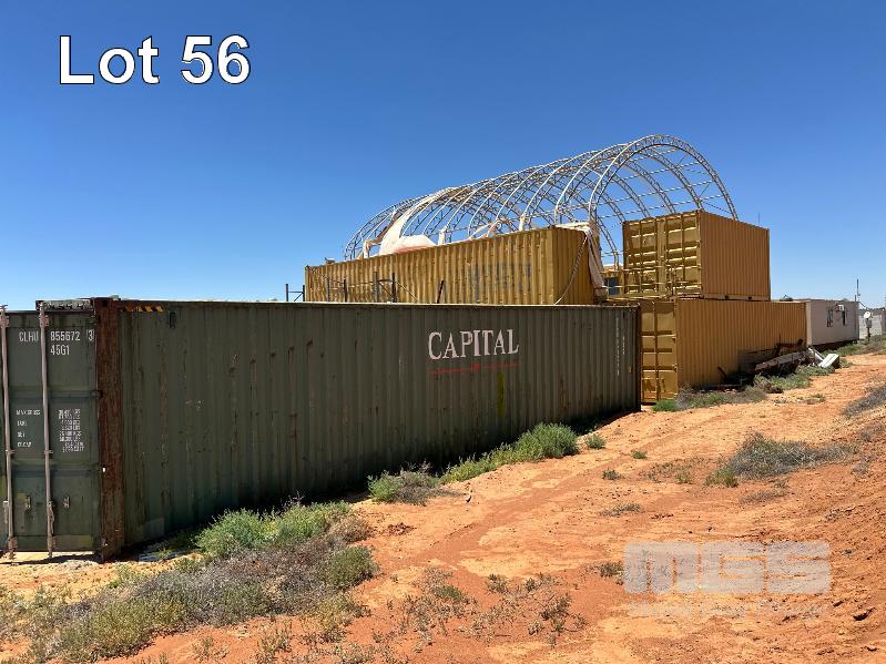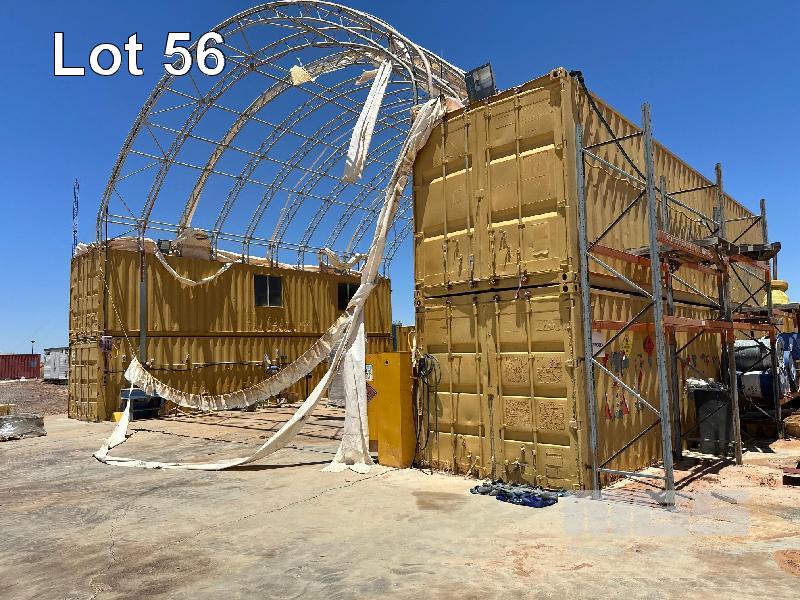 CONTAINERISED IGLOO WORKSHOP AREA COMPRISING 6 x 40' SHIPPING CONTAINERS 4 = WORKSHOP CONVERTED CONTAINERS 1 = STORE 1 = OFFICE 1 x STORAGE CONTAINER, 20' & WASTE OIL OPEN CONTAINER, 40' & TANK TO INCLUDE 60KVA DIESEL GENSET, POWER GPO'S IGLOO ROOF STRUCTURE (COVER DAMAGED) (PLANT AS PER PHOTOS)