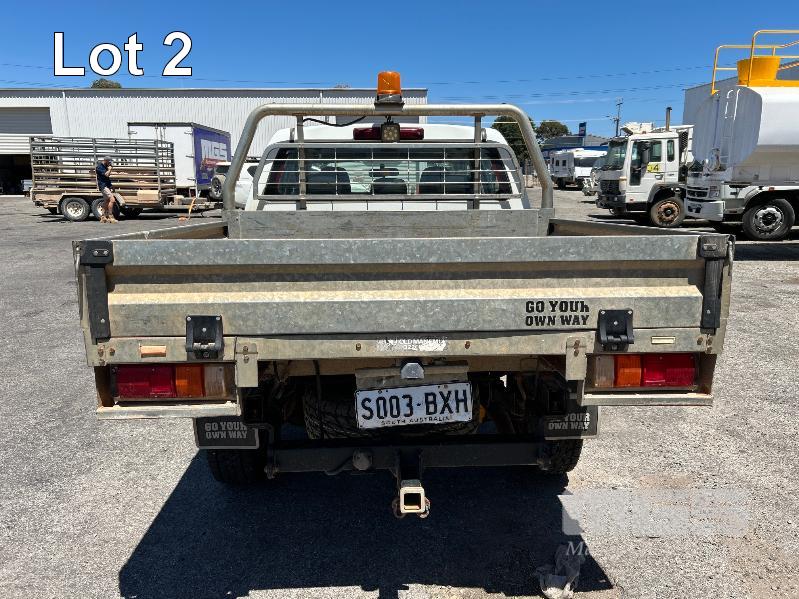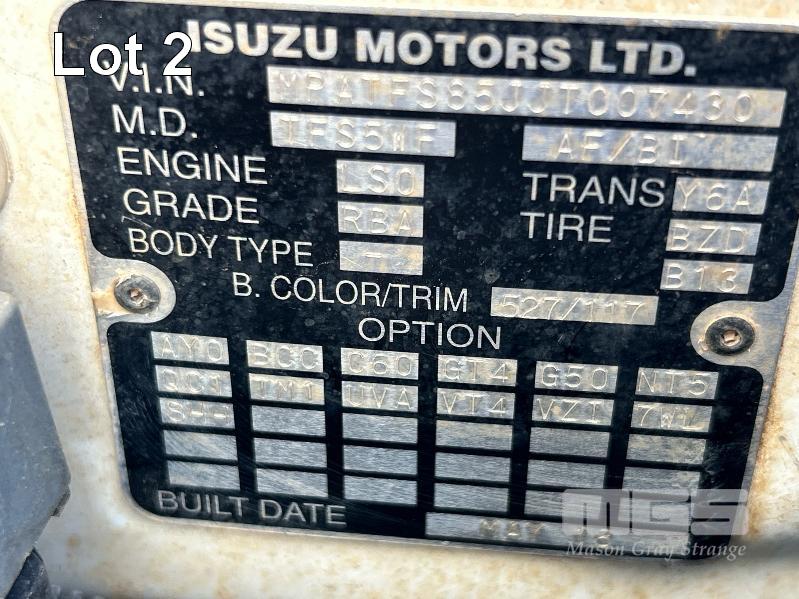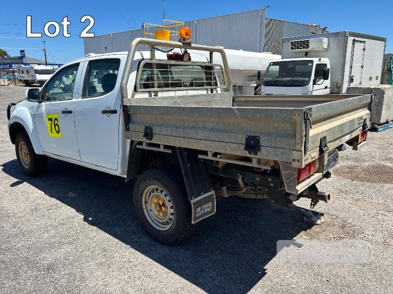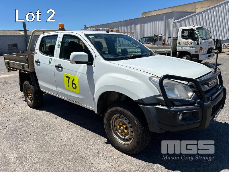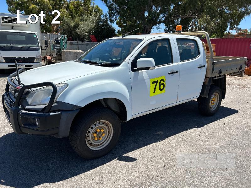 2018 ISUZU D-MAX DUAL CAB TRAY TOP UTILITY 4x4 REG: S003 BXH (SA) VIN: MPATFS85JJT007430 ENG: SR4179 ODO: 137,409kms SHOWING PLANT NO: LV76 4 CYLINDER TURBO DIESEL, AUTOMATIC TRANSMISSION, WHITE DUCO, 4 DOORS, 5 SEAT, 4x4 ABS, AIR BAG, AIR CON, BLUETOOTH, BULL BAR, CARGO BARRIER, CD PLAYER, CENTRAL LOCKING, CRUISE CONTROL, DECALS, IMMOBILISER, NUDGE BAR, POWER STEERING, POWER WINDOWS, SPARE WHEEL, SPOT LIGHTS, STEEL TRAY, WARNING LIGHTS, BATTERY ISOLATION SWITCHES KEY #53 (WITH 1 KEY/S, WITH OWNER'S MANUAL, WITH SERVICE BOOKS)