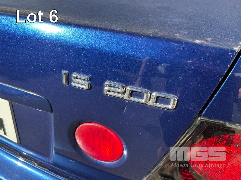 2002 TOYOTA LEXUS IS200 SEDAN REG: BB 804M (SA) VIN: JTDBS192600096150 ODO: 180,142kms SHOWING 4 CYLINDER, 2.0 LTR PETROL, 4 SPEED AUTOMATIC TRANSMISSION, BLUE DUCO, 4 DOORS, 5 SEAT, ABS, AIR BAG, AIR CON, ALLOY WHEELS, CD PLAYER, CENTRAL LOCKING, CRUISE CONTROL, POWER STEERING, POWER WINDOWS, SPARE WHEEL, SUNROOF, BONNET AND ROOF PAINT HEAVILY OXIDISED KEY #36 (NO PAPERS, WITH 2 KEY/S, WITH OWNER'S MANUAL, WITH SERVICE BOOKS)