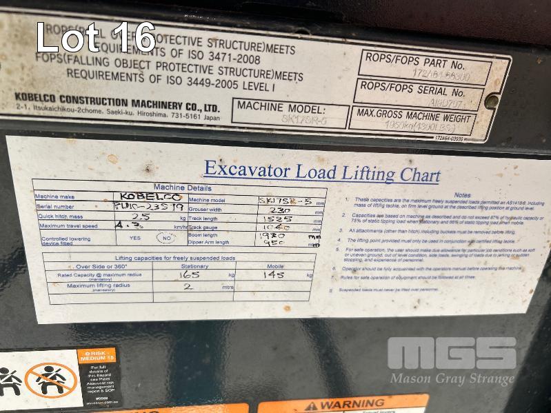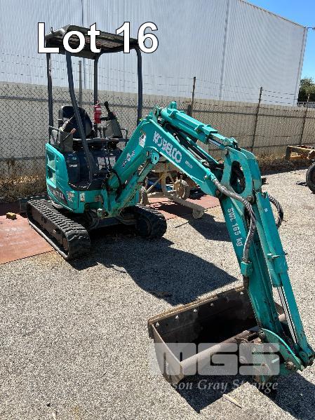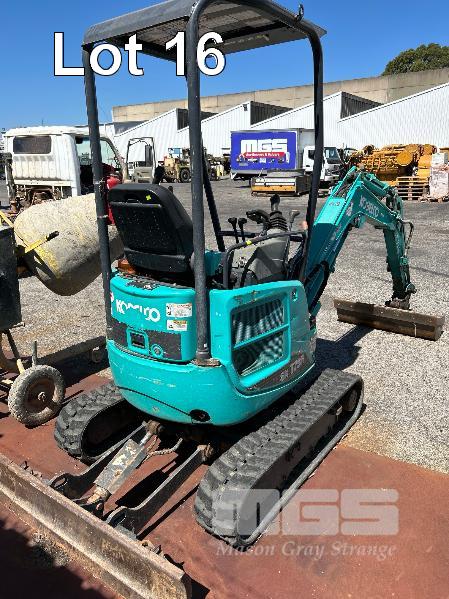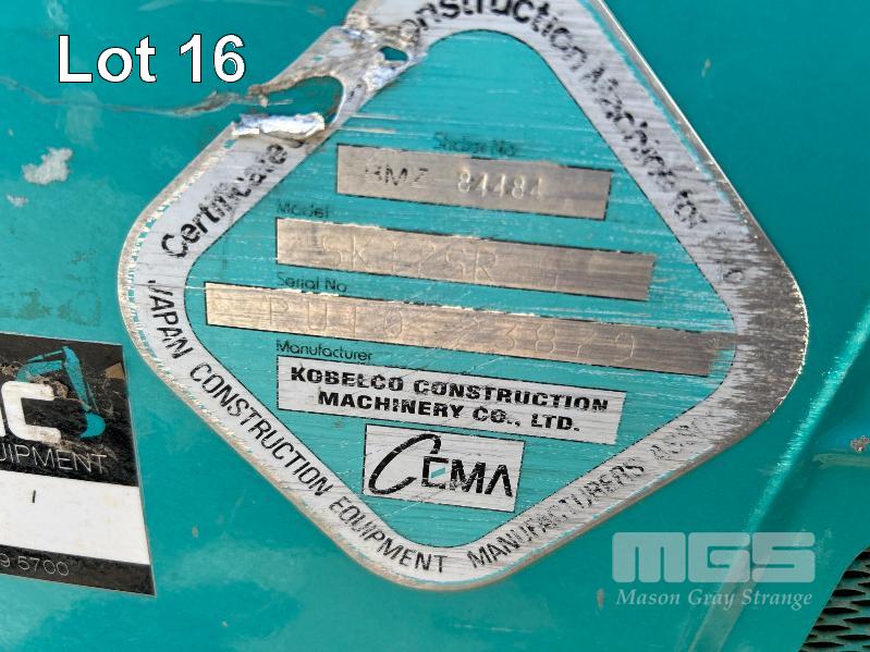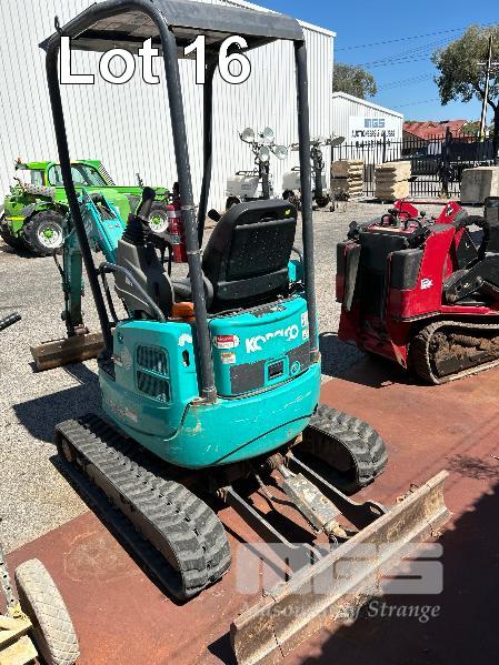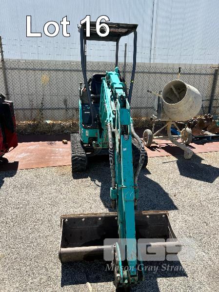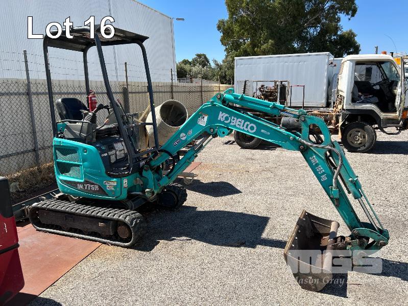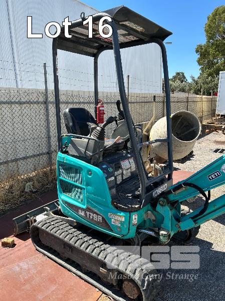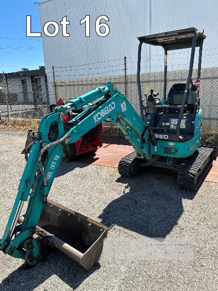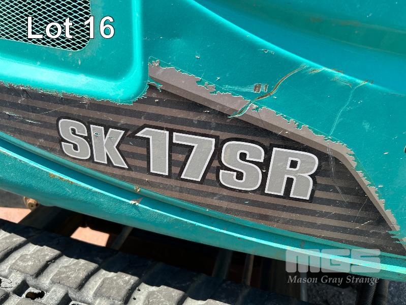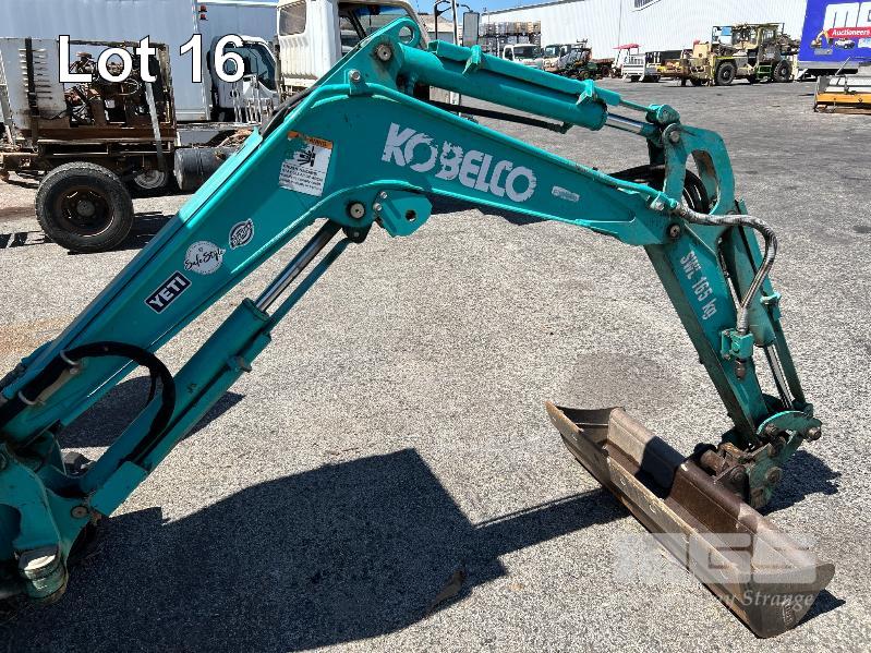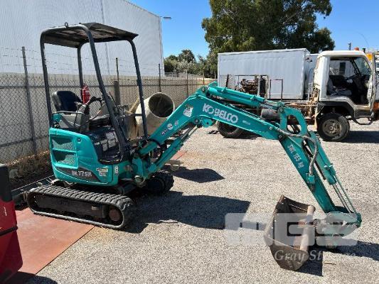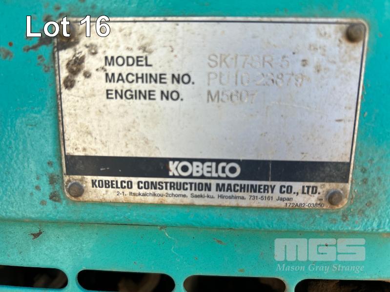KOBELCO MINI EXCAVATOR, 1.7 T MOD: SK17SR-5 MACHINE NO: PU10-23879 HOURS: 1544 SHOWING POWERED BY YANMAR DIESEL ENGINE RUBBER TRACKED ROPS/FOPS CANOPY REAR BACK FULL BLADE, 1300mm FITTED WITH 1000mm TRENCHING BUCKET INCLUDING 3 x BUCKETS, 300< 350 & 450mm & RIPPER TOOTH WITH 1 x KEY KEY #27
