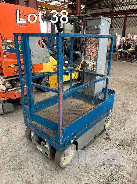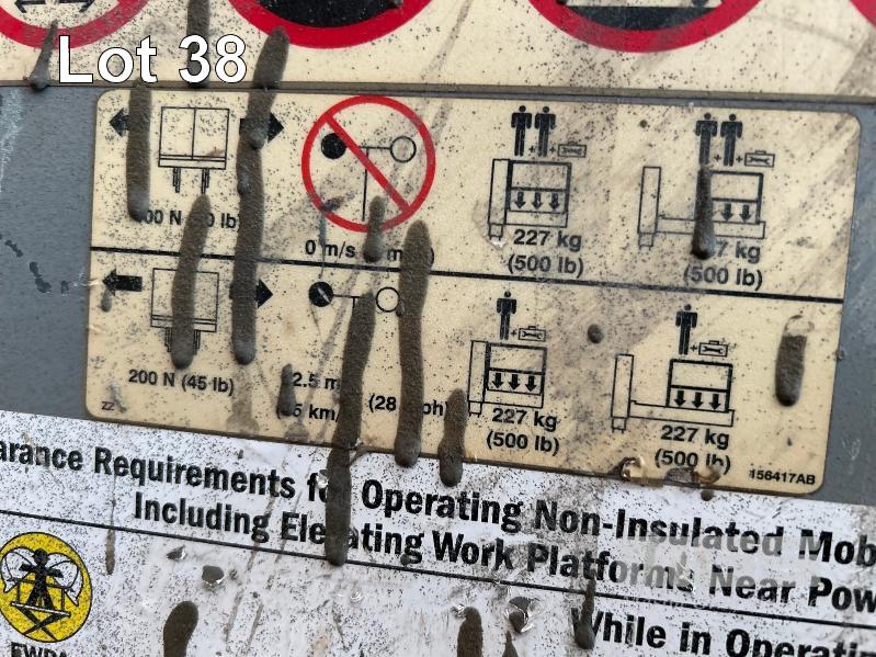 ELEVATING WORK PLATFORM LIFT, SKY JACK MOD: SJ12 2 PERSON ELECTRIC BUILT IN CHARGER, 240V HOURS: 283 SHOWING MAX LIFT HEIGHT: 3600mm MAX CAPACITY: 227kg WEIGHT: 780kg